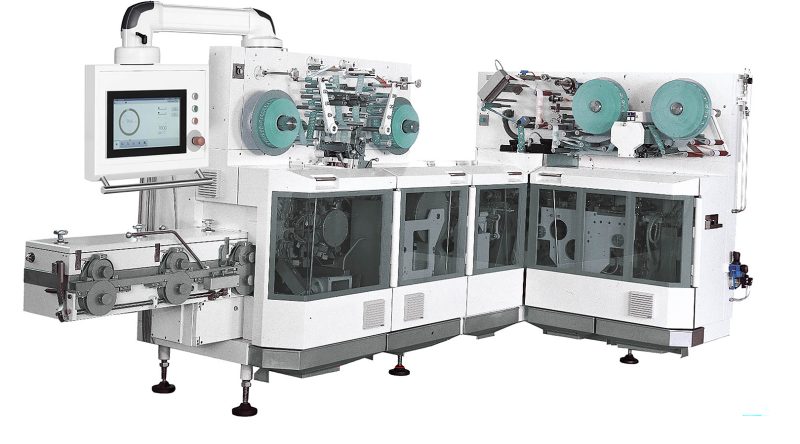 The WHF2+F3 is a combination of the WHF2 packaging machine for primary packaging in fold wrap and the F3 for secondary packaging in folded stick packs. The primary packaging of the products may optionally be bottom or side fold. The secondary packaging is available as flat or stick pack on-edge.